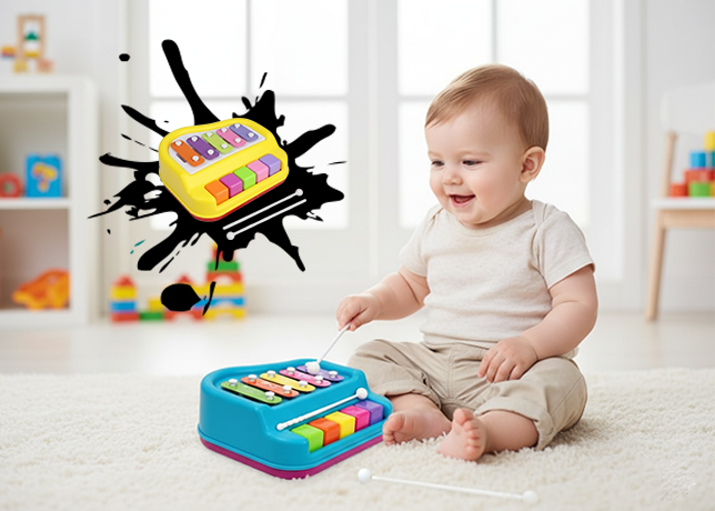 2-in-1 Baby Piano& Xylophone with 5 Vibrant Keys toy for Kids