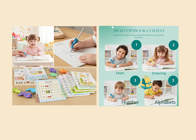 Enhance your child’s learning with the Magic Book Set featuring 4 reusable practice books, 10 refills, 1 pen, and 1 grip. Perfect for preschoolers to practice numbers, handwriting, and calligraphy in a fun, engaging way.